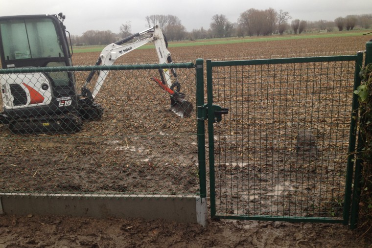 Bij het plaatsen van deze soort afsluiting gebruiken wij steeds palen met een diameter van 60mm. die vastgezet worden met beton.